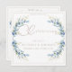 Ramas de oliva acuáticas pintadas a mano adoran esta delicada y encantadora celebración de la invitación a la vida en el agua suave, azul y oro