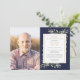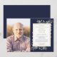 Una elegante invitación de recuerdo de celebración de la vida con acuarela personalizada y vegetación botánica en azul marino. Diseñada por Thisisnotme©