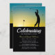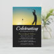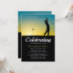 Invitación a conmemorar un funeral con un golfista con un fondo de puesta de sol y una celebración de la plantilla de vida que se puede personalizar fácilmente. Una gran invitación a rendir homenaje a todo aquel que amara jugar o ver golf.