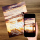 Invitación conmemorativa funeral cruz al amanecer Salmo 23 . Un hermoso fondo de silueta de cruz al atardecer con letras blancas simples. Invitaciones de plantilla de Celebración de la vida—estas invitaciones se pueden personalizar fácilmente con tu foto favorita y versículo de la Biblia.