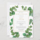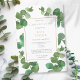 Una elegante invitación de recuerdo fotográfico personalizada de celebración de la vida con follaje de vegetación de eucalipto. Diseñado por Thisisnotme©