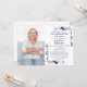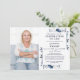 Esta elegante invitación de celebración de la vida y recuerdo floral azul marino se puede personalizar con su foto e información en tipografía moderna. Diseñado por Thisisnotme©