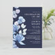 Esta elegante invitación de celebración de la vida y el recuerdo floral azul marino se puede personalizar con su información en tipografía clásica. Diseñado por Thisisnotme©