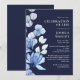Invitación Celebración de la vida funeral floral azul marino