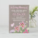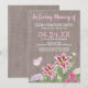 Invitación memorial de funeral rústico que presenta un fondo de madera chic de campo, flores de acuarela, mariposas y una plantilla de celebración de la vida fácil de personalizar.