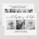 Celebración moderna y elegante de la vida, servicio conmemorativo o invitación al funeral, con 8 fotos en blanco y negro de tu ser querido con tu texto personalizado. Si necesitas ayuda para personalizar esto, por favor envíame un mensaje usando el botón de abajo y estaré encantado de ayudarte.