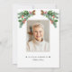Este diseño presenta una disposición de fiestas invernales con hojas verdes, bayas, pino y cono, sobre un gradiente superpuesto en la parte delantera y en la parte trasera fondo blanco. Utilice la herramienta Personalizar para agregar su información. Para artículos coincidentes, visite mi Colección de simpatía para celebrar la vida en vacaciones de invierno.