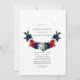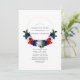 Invitación de foto personalizable para la celebración de la vida con ramo de flores rojas, blancas y azules según los detalles de su evento.