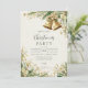 Anda en las vacaciones con encanto intemporal. Este diseño rústico de Navidades presenta elegantes campanas doradas, vegetación festiva y delicados florales de invierno, creando el marco perfecto para su reunión de temporada. Un estilo cálido y clásico para compartir la alegría de los Navidades con sus seres queridos.