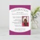 Moderna CELEBRACIÓN de Fofreno de Fotos de la Vida en rosa profundo, frambuesa invitación con PLANTILLA FOTOGRÁFICA y texto de PERSONALIZABLE. Hay un texto de la Escritura basado en 2 Corinthians 5:8. El texto de fondo dice EN LA MEMORIA DE AMOR en un patrón de baldosas. Hay otros colores disponibles. También está disponible una tarjeta de memoria compartida coincidente.