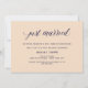 Estas invitaciones elegantes para la fiesta de después de la boda presentan un fondo rosa sonrosado y caligrafía azul marino elegante para un look moderno minimalista.