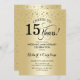 Diseño elegante con falso foil dorado brillante. Cuenta con fuente de escritura negra y diamantes de confeti. ¡Salud por 15 años! Puede ser personalizado para mostrar cualquier año de matrimonio. Envíame un mensaje si necesitas una personalización adicional.