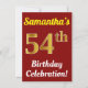 Invitación Celebración del 54 cumpleaños de rojo, falso oro +