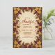 Celebre la belleza de la temporada de cosecha con este elegante diseño de Acción de Gracias. Con intrincadas hojas doradas y borgoñosas dispuestas en un marco botánico vintage, captura la calidez y riqueza de la caída. Perfecto para cenas familiares, encuentros amistosos o celebraciones formales de otoño, este diseño combina encanto intemporal con una acogedora elegancia de temporada. Personalizable completo con sus propios detalles del evento.