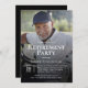 Esta invitación única para una fiesta de retiro tiene una plantilla de fotos para incluir una foto favorita del invitado de honor. Para obtener los mejores resultados, utilice una foto de orientación vertical. La plantilla de texto tiene una combinación de suero moderno y suans serif tipo face. Un overlay oscuro con sombra añade una sombra sobre tu foto para que el texto en blanco sea claro y legible. Personaliza con tu foto y detalles para una memorable celebración de retiro!