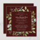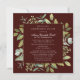 La elegante celebración de una invitación a la plaza de la vida incluye un marco botánico de bayas blancas y flores y follaje sobre un fondo rojo borgoña. El nombre de la persona fallecida está escrito en un texto de escritura tradicional. Todo el texto se puede editar fácilmente para crear un recuerdo personal.