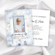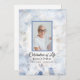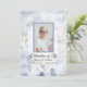 Invite a sus huéspedes a recordar a su ser querido después de su paso por la elegante invitación a funerales Blue Tinted Carnation Celebration of Life Funeral. Este homenaje conmemorativo de la muerte, con flores de bonito, presenta una fotografía floral con acuarela digital pintada de pétalos de flores de clavel blanco con un tono azul claro. Personalízalo con el nombre, fecha de nacimiento y muerte y la foto del fallecido. Disponible en forma de invitación impresa para correo y/o como descarga digital para compartirla digitalmente.