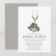 Un conjunto de invitaciones para una fiesta de caza de perlas para su próxima fiesta de perlas. Estas invitaciones presentan un texto simple en gris carbón, junto con una ilustración única de una ostra y vino blanco centrada hacia la parte superior. En el reverso de la invitación hay un color gris profundo pero suave. Todos los elementos de esta invitación son ajustables utilizando la función de personalización. Diviértase agregando sus propios detalles y haciéndola suya.