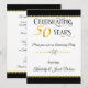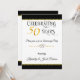 Comience su fiesta de aniversario con nuestra invitación a la celebración del 50 aniversario de bodas dorado con una impresionante invitación en fondo blanco y negro con dobles corazones dorados.