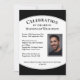 Invitación a la CELEBRACIÓN negra moderna del Servicio de Funerales LIFE Memorial con PLANTILLA FOTOGRÁFICA y texto de PERSONALIZABLE. Hay un texto de la Escritura Cristiana basado en 2 Corinthians 5:8. Hay texto de personalizable en el reverso, que puede reemplazar con detalles/notas adicionales, o borrar.