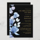 Esta elegante celebración floral azul de color negro y dorado de la vida y la invitación a la conmemoración puede ser personalizada con su información en tipografía clásica. Diseñado por Thisisnotme©