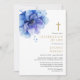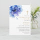 Esta elegante invitación de celebración de vida y recuerdo cristiana floral azul acuarela puede ser personalizada con su información en tipografía moderna y foto en el reverso. Diseñada por Thisisnotme©