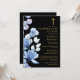 Esta elegante invitación azul floral negra y dorada para la celebración cristiana de la vida y el recuerdo se puede personalizar con su información en tipografía clásica. Diseñado por Thisisnotme©