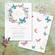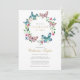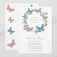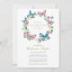 Una elegante invitación personalizada de recuerdo de celebración de vida con una corona floral de mariposa. Diseñada por Thisisnotme©