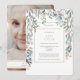 Una elegante invitación de recuerdo fotográfico personalizada de celebración de vida con follaje botánico floral. Diseñada por Thisisnotme©