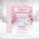 Sabemos que no puedes esperar para celebrar el cumpleaños de tu pequeña y este diseño de la temporada invernal "Celebración mágica" celebra a tu pequeña con un glorioso rosa! Un lindo unicornio está adornado con su mejor color rosado y dorado en un fondo de lavanda nevado, rosa estrellado y pálido. Los hermosos árboles rosas están en flor mientras la nieve se acumula por todos lados. Ideal para celebrar el invierno hasta los primeros cumpleaños de primavera.