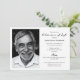 Esta moderna invitación a la Celebración de la Vida es una manera atemporal de anunciar un funeral o funeral con gracia y dignidad. Diseñado con un diseño limpio y una tipografía refinada, balancea la elegancia con la simplicidad más sentida, convirtiéndola en una elección pensante para honrar la memoria de un ser querido. La parte delantera de la tarjeta ofrece un amplio espacio para personalizar con detalles esenciales de los eventos, mientras que el estilo minimalista asegura que el foco permanezca en la información que más importa. El reverso incluye una gran foto de un personalizado, perfecta para mostrar un retrato favorito, y el nombre y fecha de vida de su ser querido, lo que permite a la familia y amigos apreciar un conservador duradero. Con su diseño clásico en blanco y negro, esta invitación es versátil y adecuada para cualquier tipo de servicio, desde los monumentos formales hasta las reuniones íntimas. Totalmente personalizable, le permite ajustar fuentes, colores y frases para reflejar la personalidad y el legado de su ser querido.