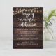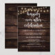 Hermoso anuncio de boda moderno rústico de madera oscura, luces de cuerda, tema de cabaña de granja, tarjeta de invitación de boda (celebración por siempre feliz). Esto es perfecto para la recepción de su boda y la fiesta de celebración después de la boda. Agregue sus detalles en fuente / letra coincidente.
