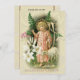 Hermosas invitaciones religiosas de primavera de Pascua de Resurrección Brunch o Celebración con imagen vintage del Niño Jesús sosteniendo una cruz de oro con un cordero y lirios. Todo el texto y las fuentes se pueden modificar.