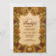 Reúnase en gratitud con este rústico diseño de Acción de Gracias con flores doradas y de color rojizo dispuestas en un marco vintage ornamental. La cálida paleta de otoño y los detalles botánicos intrincados evocan la acogedora belleza de la temporada de cosecha, perfecta para cenas familiares, reuniones amistosas o elegantes celebraciones de otoño. Personaliza fácilmente todo el texto para crear tu propia pieza atemporal.