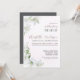 Celebración de la vida de la invitación funeraria. Elegante y Delicada invitación floral personalizada a la memoria. Lilies blancos color agua sobre un fondo rosa pálido. En el texto se agrega un hermoso guión rosa de Rubor. Lilies Blancos es una flor funeraria clásica, y simboliza la Pureza, el Renacimiento y la Inocencia. En la parte superior de las flores se ha añadido un degradado blanco para hacerlas suaves y delicadas. Inviten y reúnanse para honrar la memoria de sus seres queridos, reflexionen sobre el amor, la alegría y la luz que trajeron a sus vidas. Gris hacia atrás.