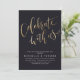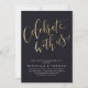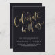 Las invitaciones modernas y sencillas incluyen la escritura a mano "celebrar con nosotros" en color oro Faux sobre fondo negro, personalizar con sus detalles fiestas, elegante y elegante. Ideal para la fiesta de compromiso, la fiesta de boda, el fiesta de renovación de juramento y cualquier evento de celebración. Vea todas las piezas coincidentes de la colección.