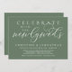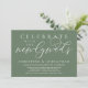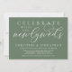 Anuncie elegantemente su feliz eterno después con nuestra moderna y romántica carta de invitación a la celebración del boda con temática verde, "Celebre con los recién casados". Adaptada para parejas que continúan con su historia de amor, esta invitación logra un perfecto equilibrio de sofisticación y encanto, y establece el escenario para un evento inolvidable. Con un moderno diseño de escritura contemporánea, le da un toque de gracia eternidad a su día especial. Diseñada por el talentoso Teesha Derrick, esta invitación es una expresión elegante de tu amor perdurable.