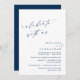 Tarjeta de invitación a la celebración del retiro de bodas (celebramos con nosotros), con temática romántica de color azul marino de escritura moderna. Es perfecto para su fiesta de recepción de boda/celebración post boda. Añade tus detalles.