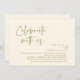 Con elegancia anuncia tu feliz eterno después con nuestra estética estética estética tema de oro amarillo boda de la celebración de la fiesta de la fiesta, "Celebra con nosotros". Adaptada para parejas que continúan con su historia de amor, esta invitación logra un perfecto equilibrio de sofisticación y encanto, y establece el escenario para un evento inolvidable. Con un moderno diseño de escritura contemporánea, le da un toque de gracia eternidad a su día especial. Diseñada por el talentoso Teesha Derrick, esta invitación es una expresión elegante de tu amor perdurable.