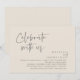 Anuncie elegantemente su feliz eterno después con nuestra moderna tarjeta de invitación a la celebración de la celebración de la independencia de los bodas en color crema gris crema, "Celebre con nosotros". Adaptada para parejas que continúan con su historia de amor, esta invitación logra un perfecto equilibrio de sofisticación y encanto, y establece el escenario para un evento inolvidable. Con un moderno diseño de escritura contemporánea, le da un toque de gracia eternidad a su día especial. Diseñada por el talentoso Teesha Derrick, esta invitación es una expresión elegante de tu amor perdurable.