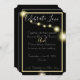 Celebrar el amor: la invitación de boda simple parpadeante es una compilación de elementos gráficos originales. Texto blanco y champán elegante y blanco contra un fondo negro con luces falsas de champán y líneas artísticas onduladas.