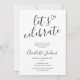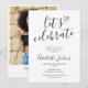 Esta elegante invitación de fiesta de graduación en negro y blanco "vamos a celebrar" se puede personalizar con la foto especial de tu graduado en el reverso. Diseñado por Thisisnotme©