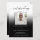 Invite family and friends to gather in remembrance with this Celebration of Life or funeral memorial invitation. Designed with two photos (one on each side), this photo invitation features elegant script in an editable gradient color (shown in black and white). Change the background and graphics colors in EDIT--the gradient will be automatic. Personalize with your loved one’s name, dates and event details to create a meaningful tribute. ASSISTANCE: For help with design modification or if you would like coordinating items, contact the designer BEFORE ORDERING via the Zazzle Chat MESSAGE tab or email makeitaboutyoustore@gmail.com.