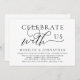 Marque el comienzo de su para siempre con elegancia utilizando nuestra tarjeta de invitación de celebración de baile de fiesta de brunch de almuerzo de cena de fuga de boda temática contemporánea en blanco y negro, "celebre con nosotros". Perfecta para parejas que extienden su alegre ocasión, esta invitación emana sofisticación con un toque de diversión, preparando el escenario para un evento memorable. Adornada con un tema de diseño de letra moderno y atemporal, añade un toque de encanto refinado a sus festividades. Creada por TeeshaDerrick, esta invitación promete capturar bellamente su historia de amor.