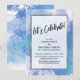 Sobre un fondo artístico desordenado que presenta pintura salpicada en tonos de azul, púrpura y turquesa, he colocado un rectángulo opaco bordeado en dorado falso metálico para compensar el texto. La parte superior presenta una capa de tipografía simple que dice "Vamos a Celebrar" en una escritura moderna y casual a mano. Utilice los campos de la plantilla para agregar sus propios detalles. Todas las capas se agregaron por separado y se dejaron desbloqueadas para darle control de diseño. // 105 //