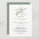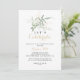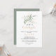 Esta invitación a una fiesta de follaje dorado verde es perfecta para una fiesta de compromiso rústica, una fiesta de soltera, una jubilación, graduación, boda tras fiesta o cualquier evento o fiesta. Este diseño artístico presenta acuarelas de color oro y follaje verde de inspiración natural.