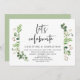 Tarjeta de invitación de boda con tema de jardín de verano con hojas verdes y escritura negra moderna (Celebremos). Es perfecta para la recepción de boda íntima o la fiesta de celebración después de la boda. Agrega tus detalles en fuente negra coincidente.