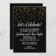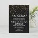 Invitación Celebremos Confeti Dorado sobre Negro Aniversario