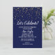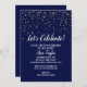 Invitación Celebremos el Confetti de oro en Fiesta azul de la
