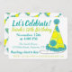 La invitación presenta un ilustracion de marca original de un gorra fiesta de puntos polka verde, azul y amarillo, con LET'S CELEBRATE en una fuente divertida. Ideal para una fiesta de cumpleaños, víspera de Año Nuevo u otra celebración. ¿No ves lo que estás buscando? ¿Necesita ayuda con la personalización? Contacte con Rebecca para que tenga algo diseñado para usted.
